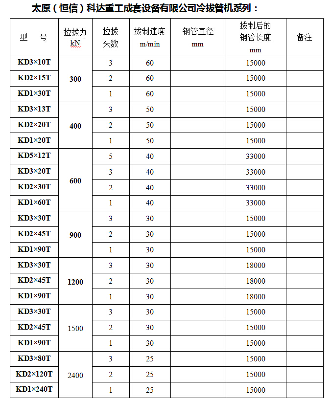 冷拔機(jī)設(shè)備能力概述(按噸位選型時上下限不同)